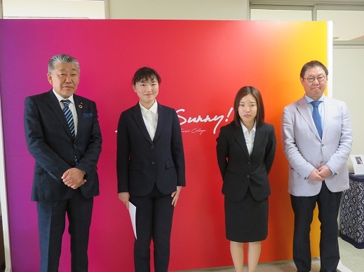 最初に学長より挨拶があり、続いて佐々木氏より学生に「令和5年度佐々木修学支援奨学生証」を手渡されました。その後佐々木氏より学生へ温かい励ましの言葉が送られました。各学生より奨学金を生かして今後の勉学に励むことや免許・資格取得の希望をお礼のことばと共に述べました。