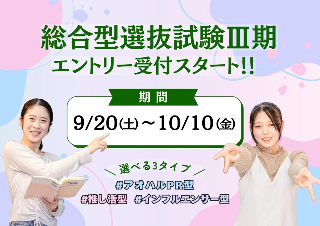 2026年度 総合型選抜試験Ⅲ期のエントリー受付が2025年9月20日(土)より開始しました。
