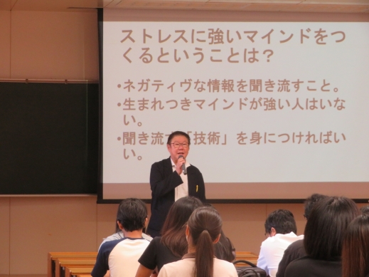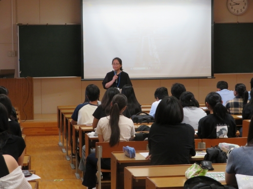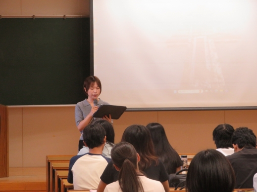 次に教務部長から履修登録について説明がありました。 最後に、学生部長より、後期の行事で