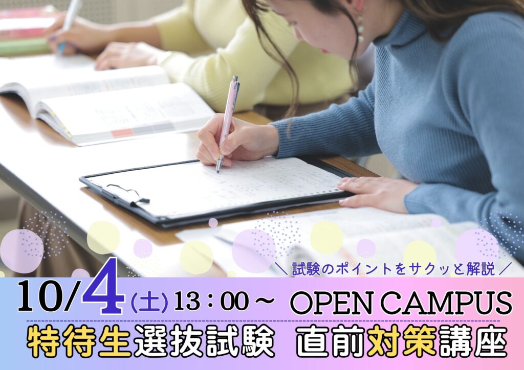 次回のオープンキャンパスは、10/4(土)「特待生選抜試験 直前講座」です🔥