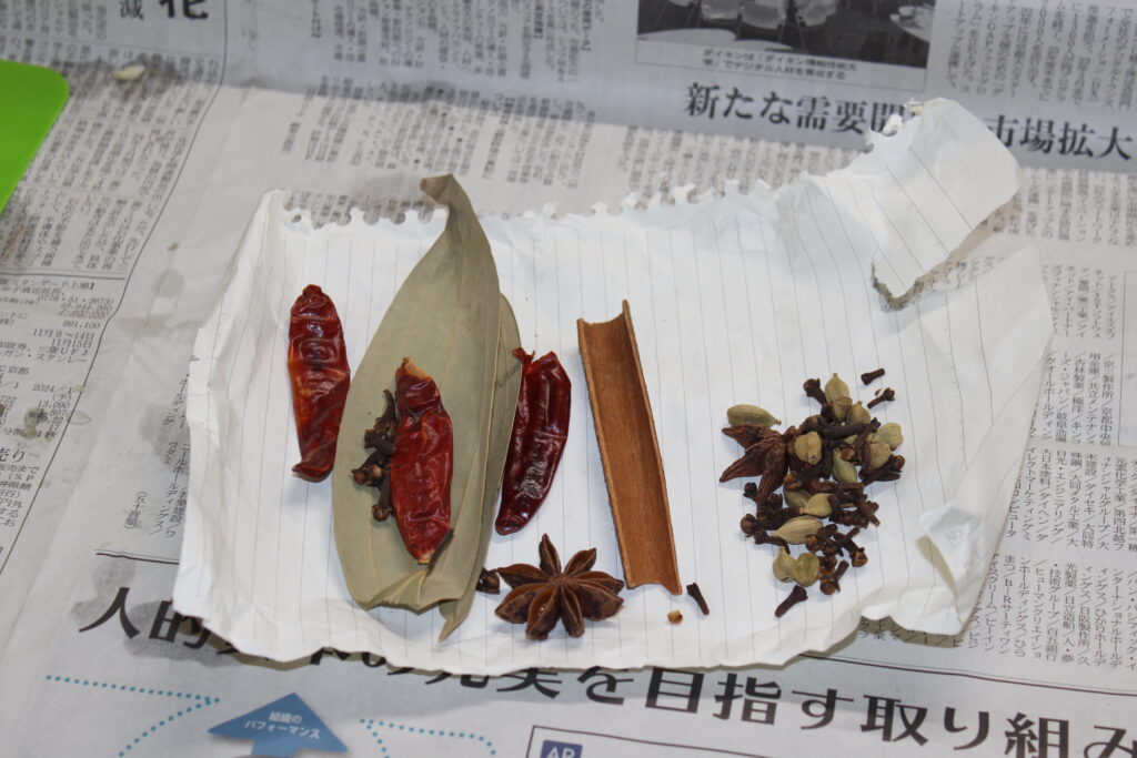当日、サジョタンの近くのスーパーで買い出しをしました。カレー粉やスパイスは、学生たち行きつけのお店で調達してくれました!