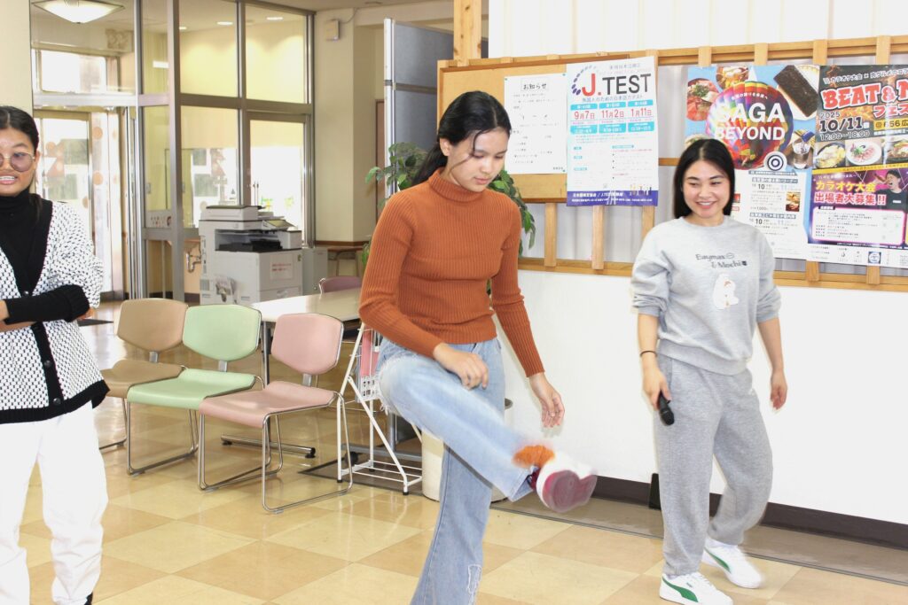 ネパール人留学生がお手本を見せてくれたのですが、簡単そうに見えて意外にも難しく、練習時間が設けられました💦