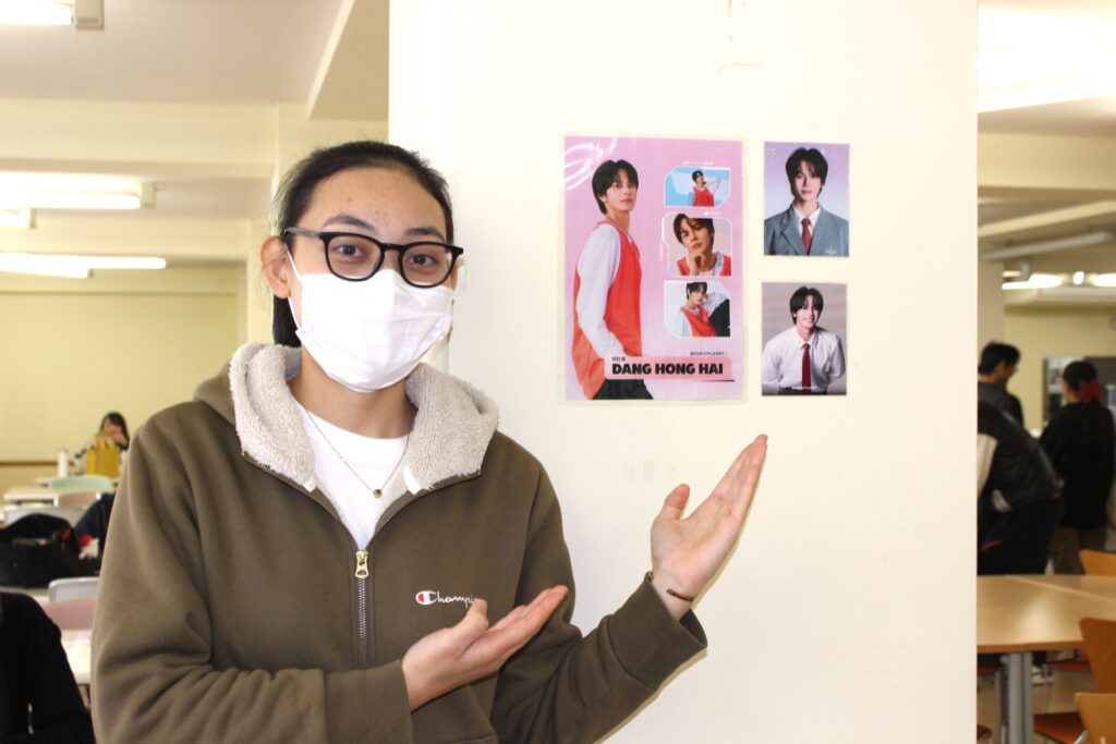学生ホールには、ベトナムと台湾の有名な観光地や、食べ物、お土産、アイドルの写真を飾りました😻