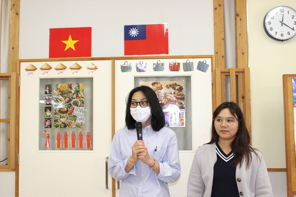 1日目、学生たちは、ベトナムと台湾の国・文化を紹介してくれました。