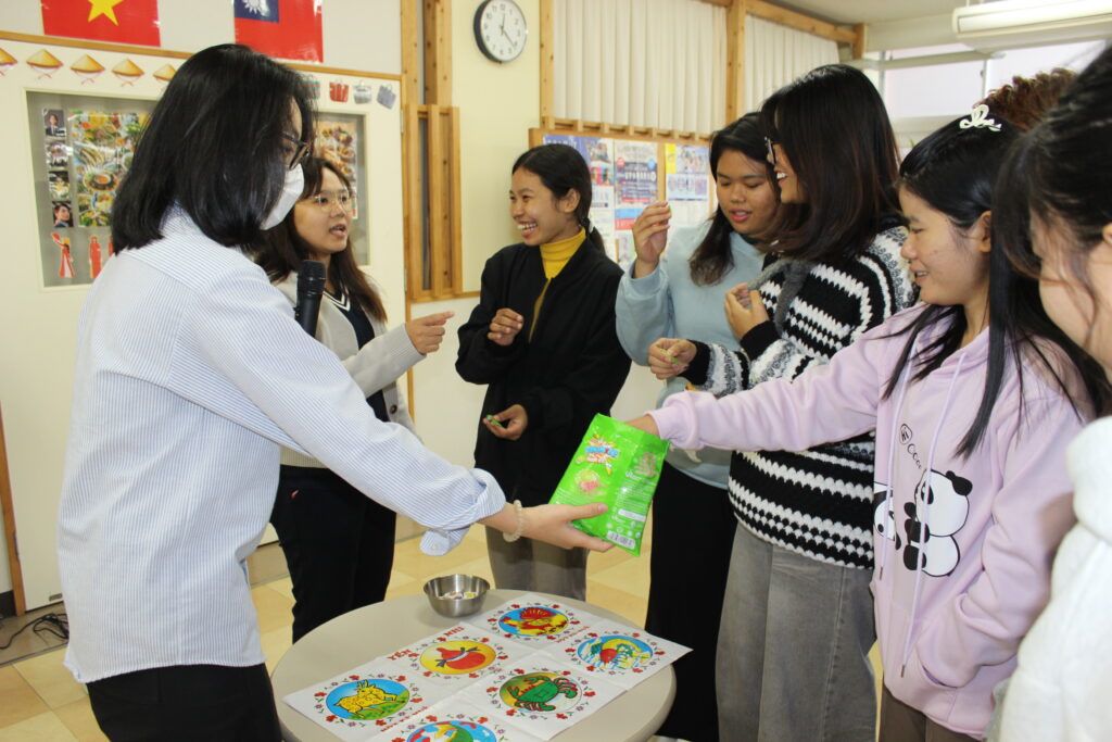 現在、佐賀女子短期大学にはベトナム人留学生が1名、台湾人留学生が1名のみ在籍しています。どんなことをすればみんなが楽しめるか考えながら、ベトナム人留学生と台湾人留学生が中心となって企画運営をしました✨