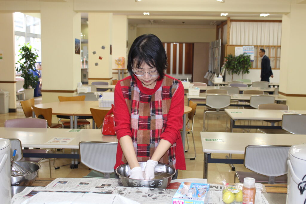 1人で黙々と作る台湾人留学生✨台湾では自分で作ることはなく、お店で食べるデザートだそうです。なので、この日のために練習してきたんだとか!