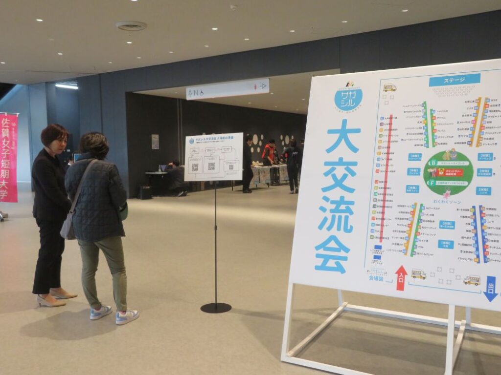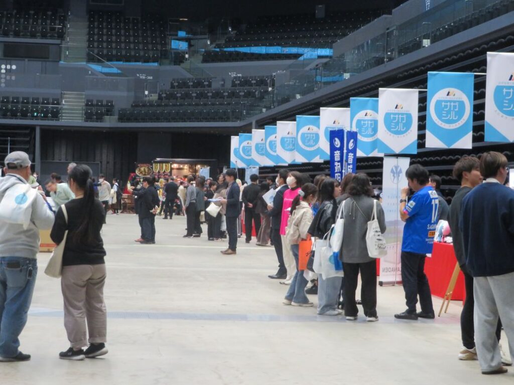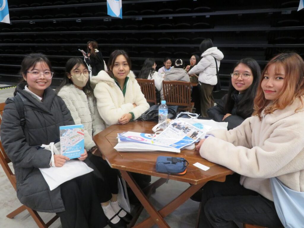 11月30日佐賀アリーナで行われた佐賀県内企業と学生との交流会に地域みらい学科の学生約30名が参加しました。これは、約100社の企業が自慢の商品やサービスを展示し、商品に触れたり、社員の方と交流しながら自分のペースで知ることができるイベントで、今回留学生と交流してみたい企業がピックアップしてあり、参加した留学生はその企業を中心にお話を聞いていました。将来の進路選択の一つとしてとても参考になる有意義な機会となり、また企業のブースでお話を聞いてポイントを集めると豪華賞品がもらえ、楽しいひと時を過ごしていました。