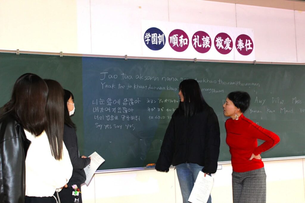 学生は韓国語、ベトナム語、アルメニア語、ゲール語、ブラジル・ポルトガル語、フランス語、スペイン語、ハワイ語、ラテン語、タイ語、中国語、タガログ語などの歌を選んでいました。歌を通して外国の文化に触れる機会となっています。