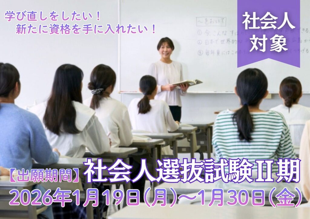 社会人・高校既卒者対象(性別問わず2026年4月1日現在で満年齢22歳以上) の社会人選抜試験Ⅱ期の出願が始まりました。