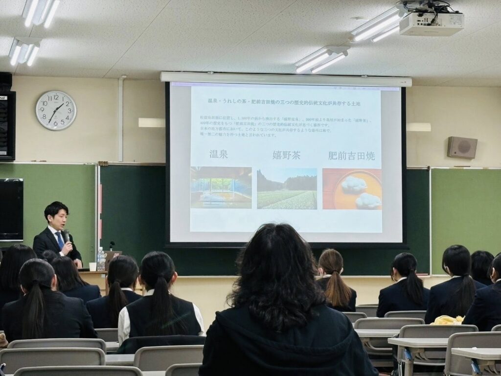 内容は多岐にわたり、1日目は、客員教授で観光地嬉野市で旅館大村屋 https://www.oomuraya.co.jp/ の経営や文化発信、地域活動など引き出しの多い北川健太先生による、『「暮らし観光」から始まる地域活性』の授業が行われました。