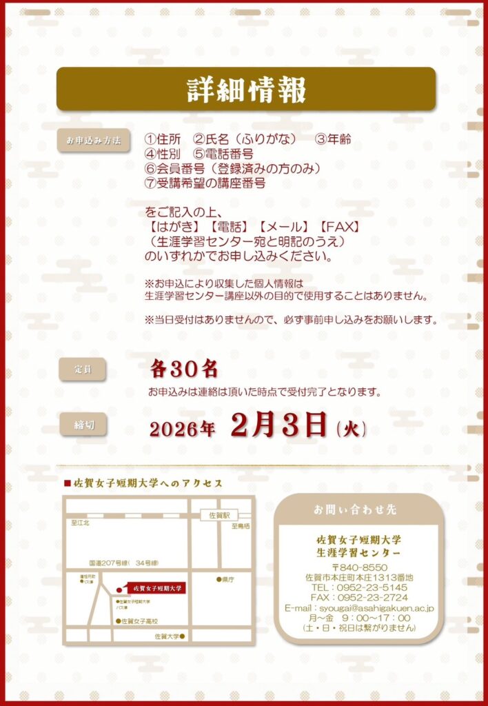2026年度・佐賀女子短期大学 生涯学習センター特別講座のお知らせ